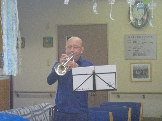 昼食前には職員2名によるトランペットとピアノのデュオを聴いていただきました。