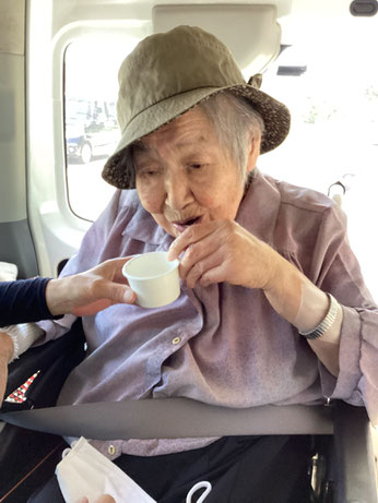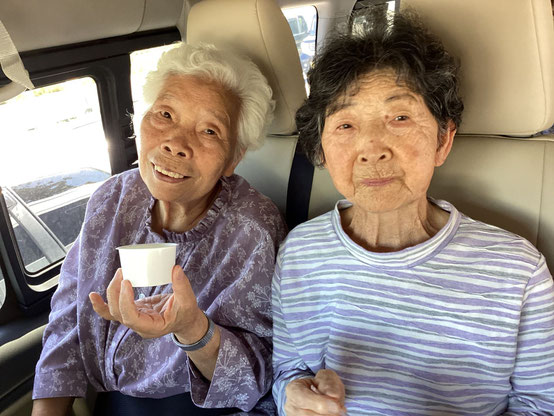 先日、外出行事にてソフトクリームを食べに出かけました。